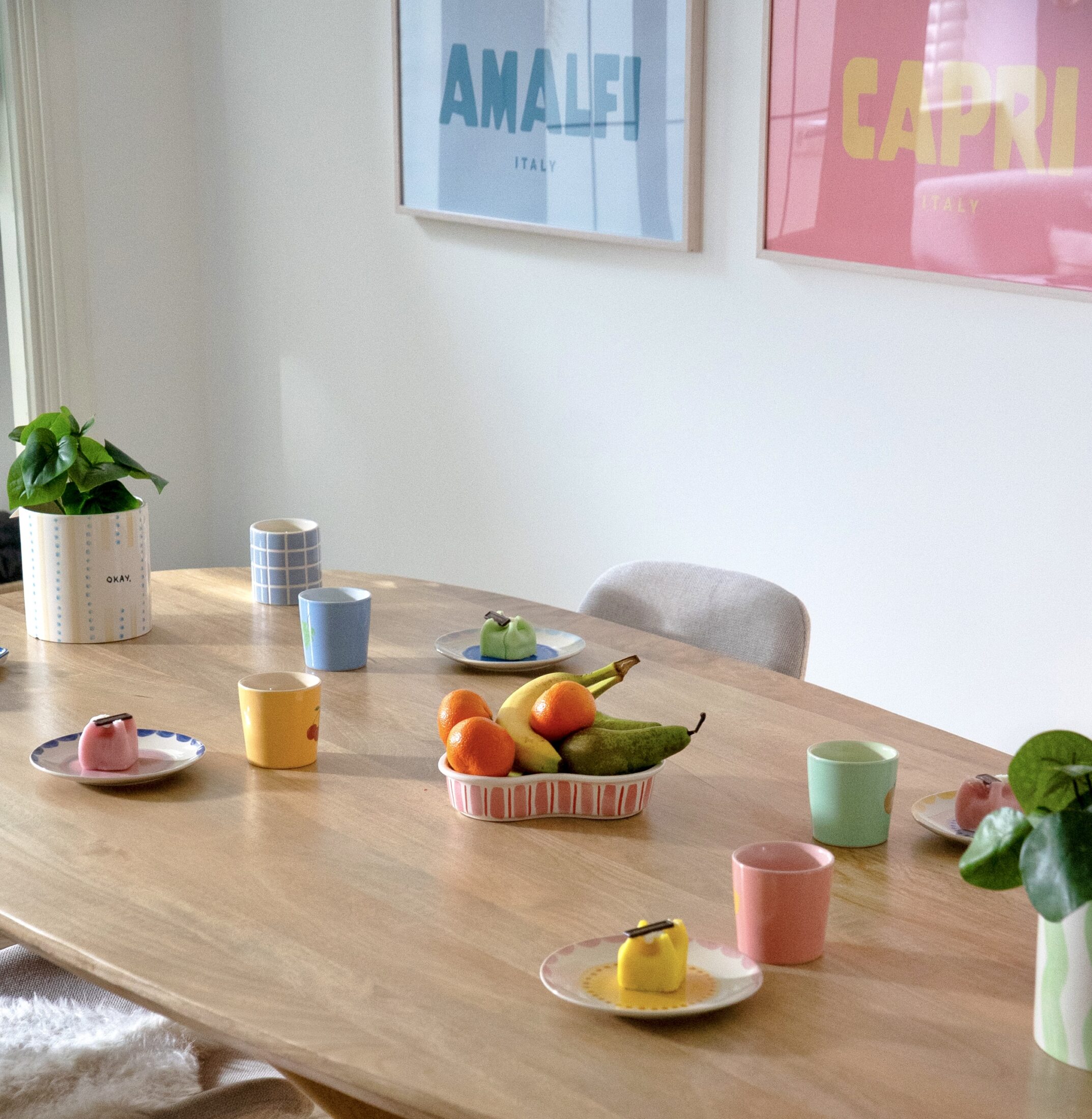 Make your home even cozier with this hand-painted plant pot from And Nook. Proudly made in Portugal, the pot is decorated with hand-painted blue dots, yellow stripe and with the message “okay”. The plant pot measures 14 cm by 14 cm, making it a perfect gift for a loved one. And Nook’s plant pots are all hand-painted, making each piece unique. With the hand-painted plant pots from And Nook you will brighten up every nook and cranny in your home.
