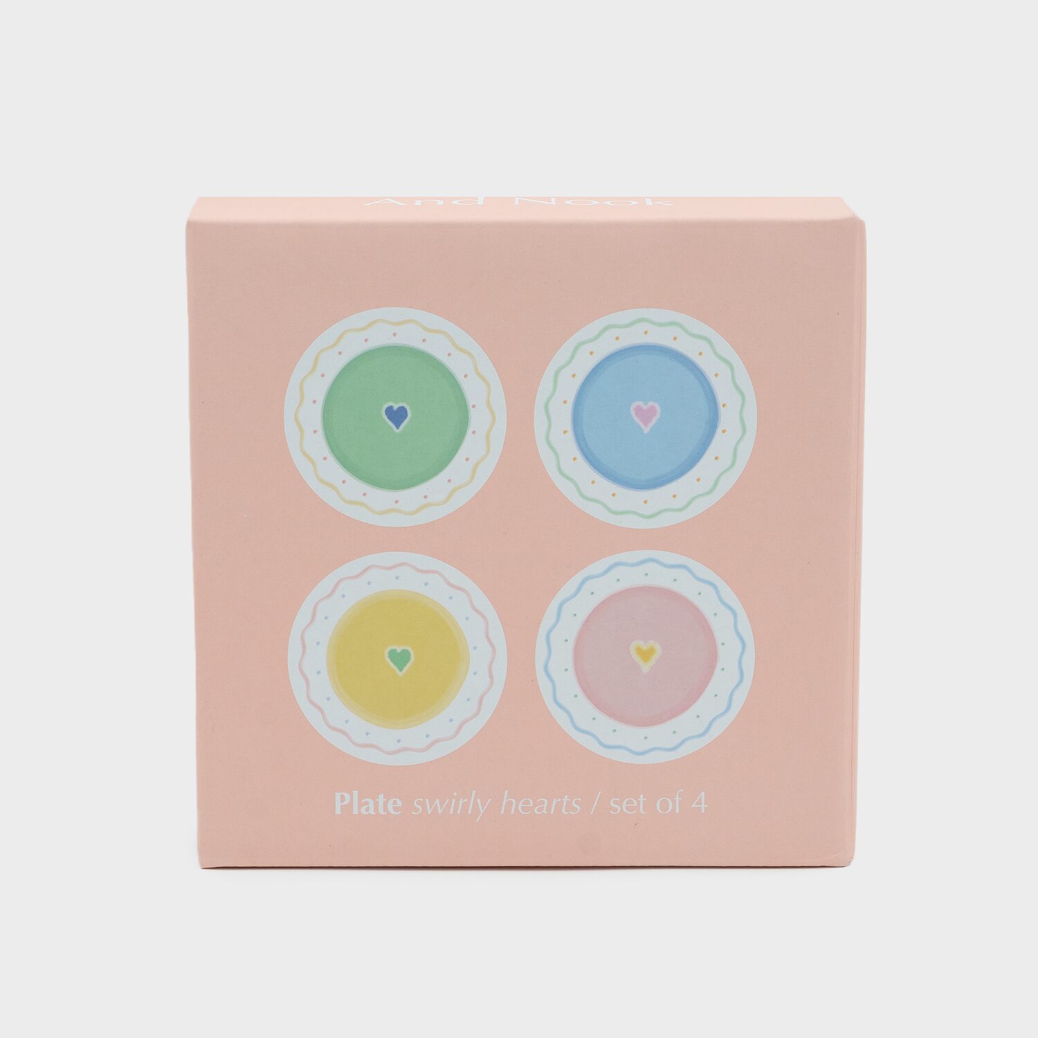 Add a touch of charm and playfulness to your tableware collection with this 4-piece plate set from And Nook. With a diameter of 15 cm, these plates are ideal for serving pastries, small bites, or as a dish for the matching And Nook coffee cups. Each plate is hand-painted and features an adorable heart at the center. Surrounding the heart is a white, indented rim with texture, adding a subtle contrast in both color and feel. This special finish gives the plates a refined and artisanal character. Encircling the rim is a playful zigzag pattern that adds a cheerful and unique look. These plates are not only beautiful but also practical, as they are dishwasher safe. A perfect mix of style and convenience. With these plates, you’ll brighten up every nook and cranny of your home.